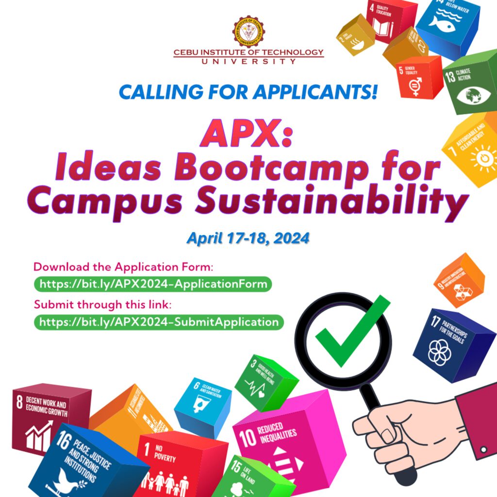 The APX is a two-day bootcamp where students will be engaged in conceptualizing a project that campaigns for environmental sustainability which can be implemented inside the CIT University campus. The ideas should focus on SDGs campaigning for the environment, society, and governance, among others.