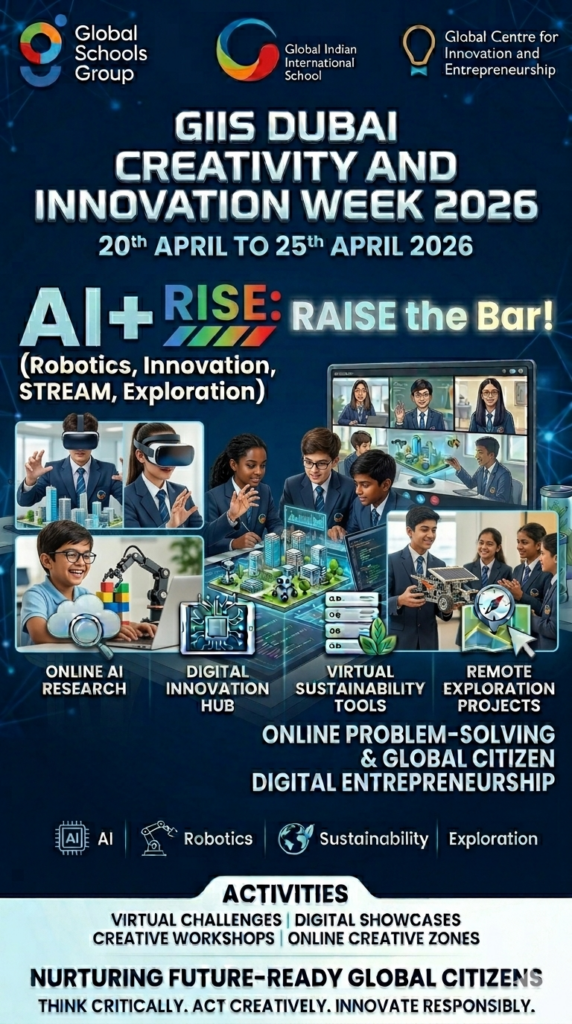 GIIS Dubai proudly presents Creativity & Innovation Week 2026, a dynamic celebration of ideas, imagination, and future-ready thinking. This week-long event brings together students, educators, and mentors to explore how creativity and innovation can solve real-world challenges and shape a better tomorrow.