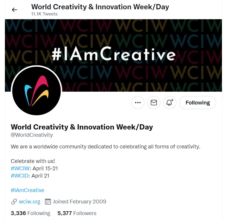 We are World Creativity & Innovation. We are World Creativity & Innovation Week and World Creativity & Innovation Day. We welcome everyone. We celebrate every creative idea and effort. Creativity does not take sides. Neither do we. Creativity considers all points of view. We welcome creatives with diverse perspectives and ideas with open arms, open hearts, and open minds.